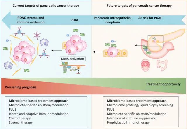 5.PDAC患者的肠道及口腔菌群组成发生改变,肠道菌群的组成影响胰腺癌免疫治疗的疗效。