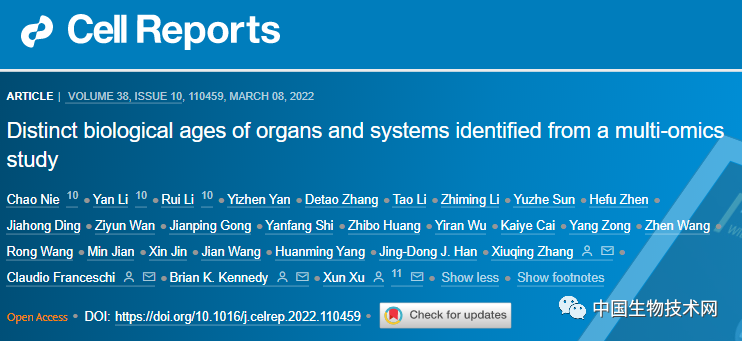 2022年3月8日,发表在《Cell Reports》上的一项最新研究中,来自深圳华大基因研究院院长徐讯领导的研究团队填补了这项空白。他们发现了人体全身系统中可能存在多个“时钟”的证据,并利用多组学数据表明器官和系统的衰老速度存在差异。